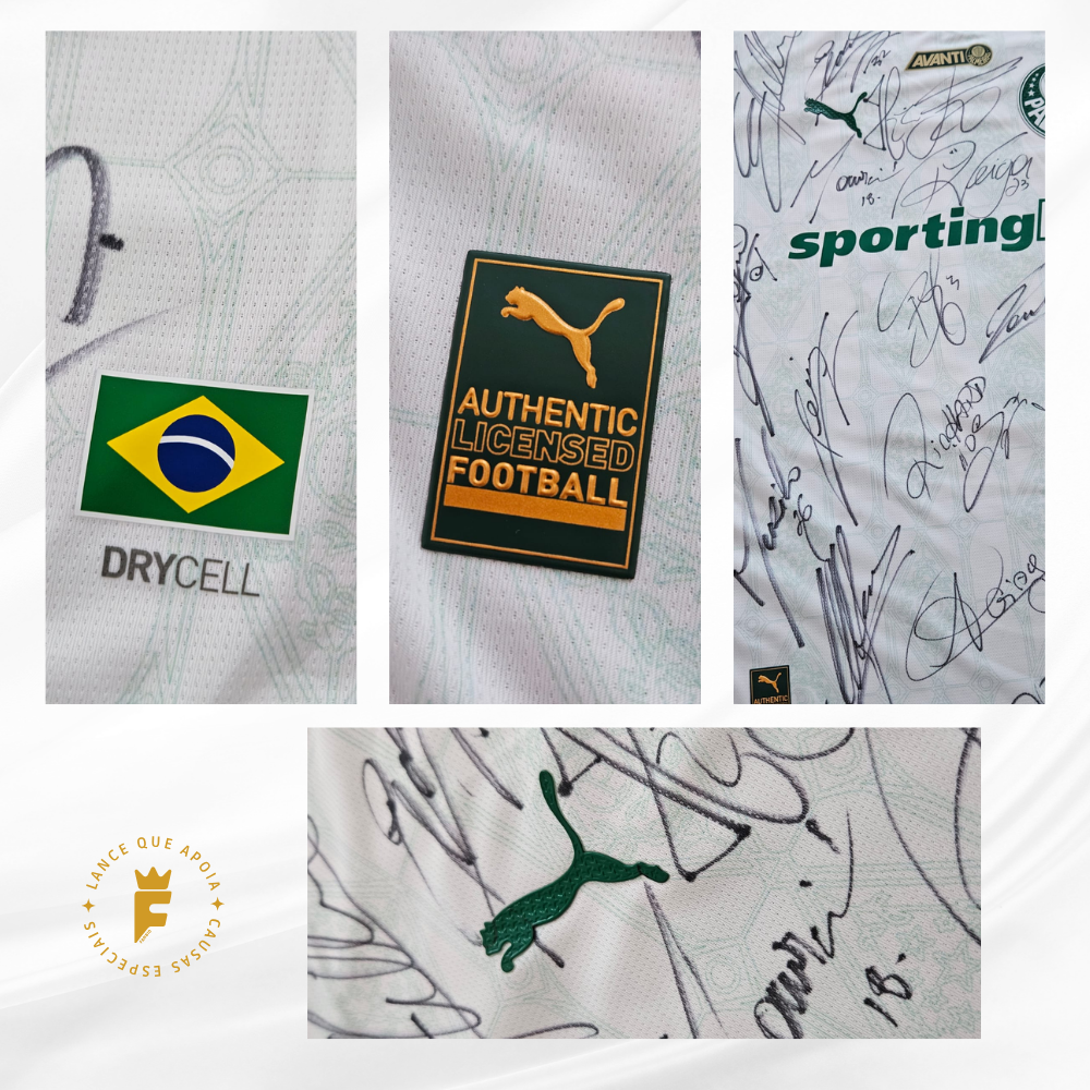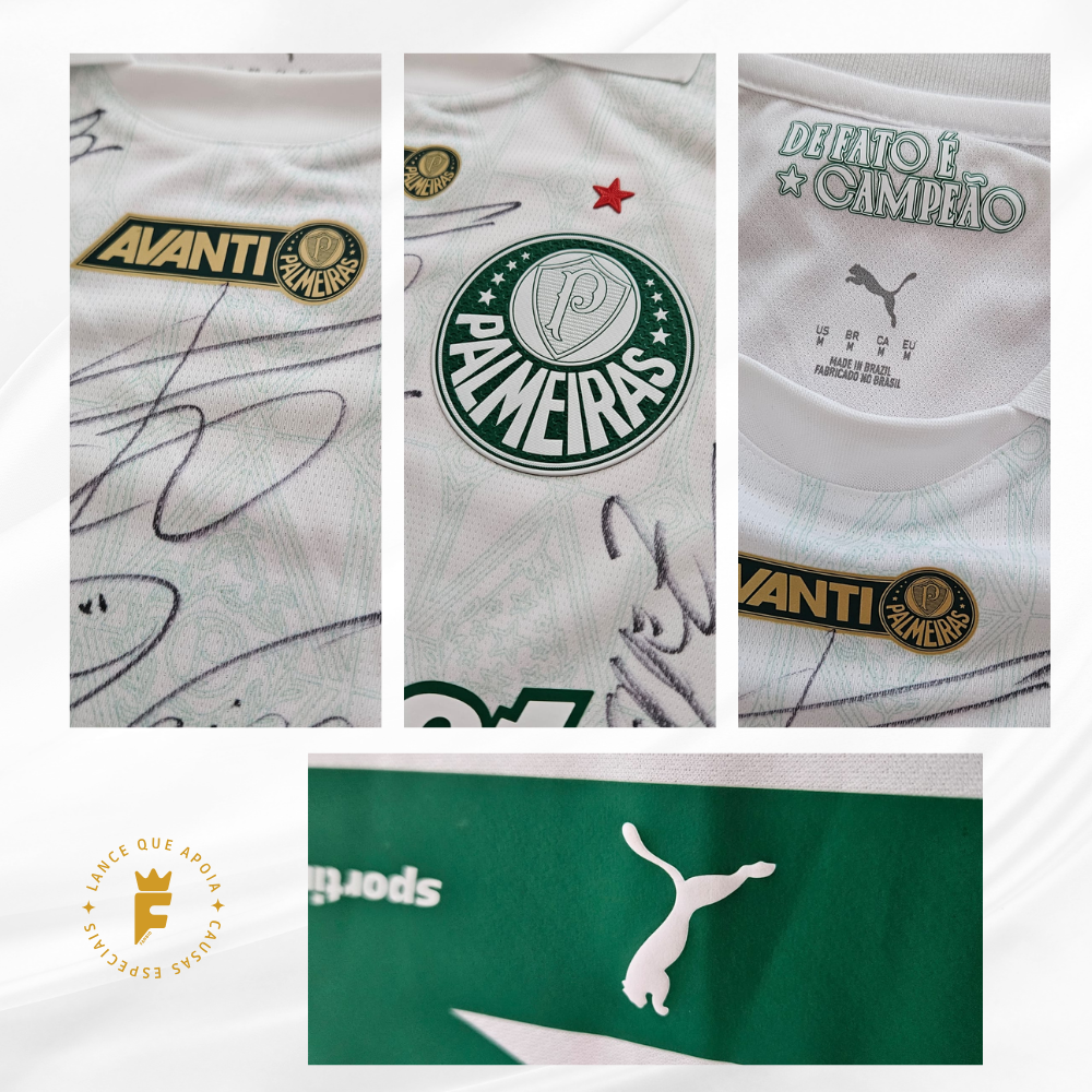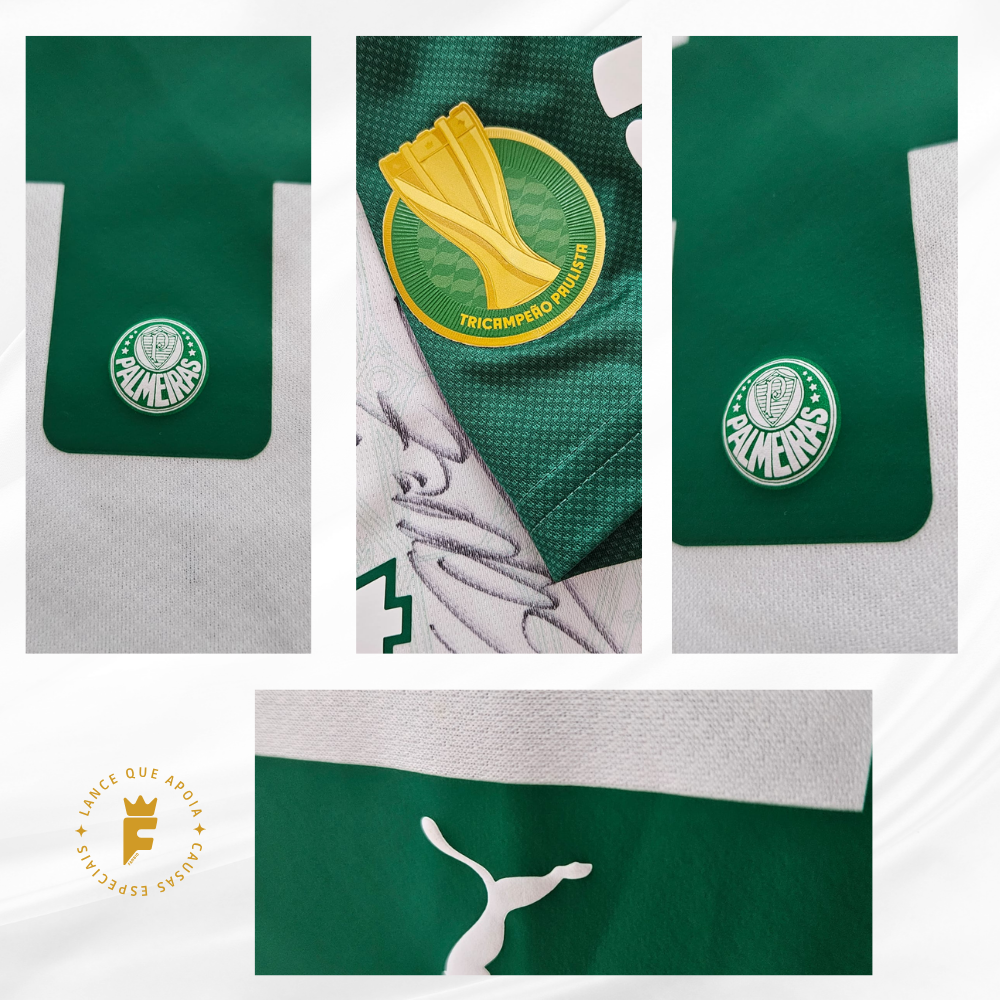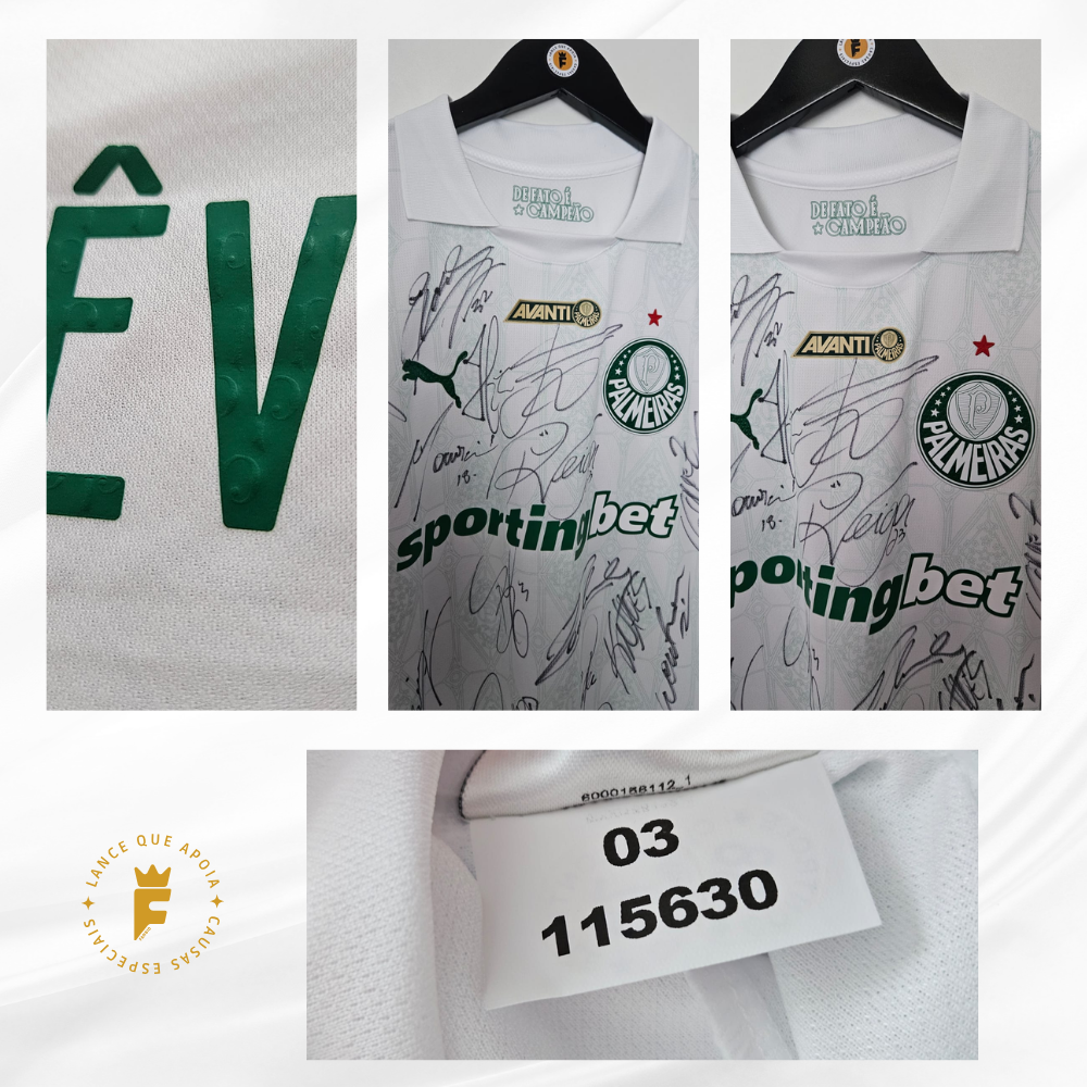 Camisa Palmeiras 2025, de jogo, N45 Estêvão, autografada elenco