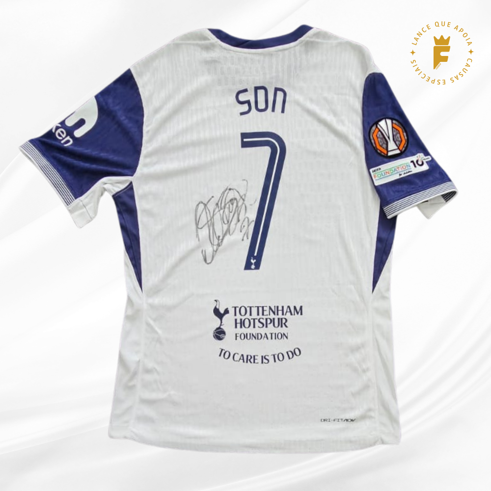 Camisa Tottenham Final UEFA Europa League 2024-25, vers jogador, N9 autografada Son, campeão