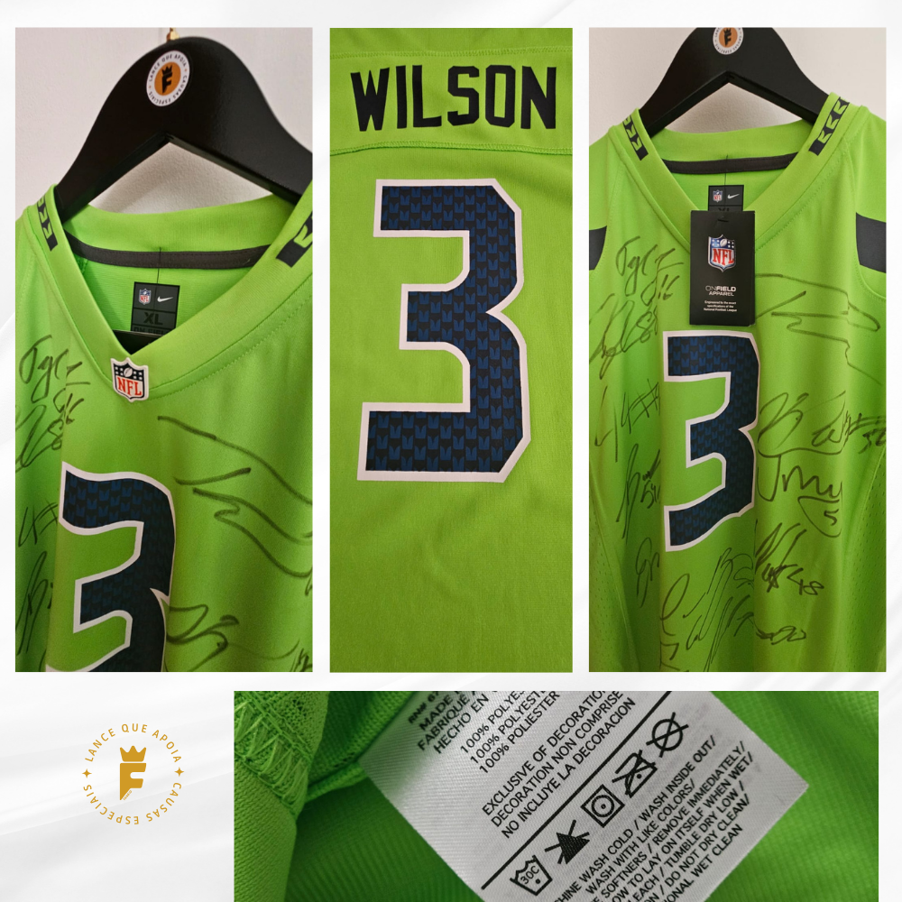 Camisa oficial NFL Seattle Seahawks 2021 Autografada 13 Jogadores do elenco
