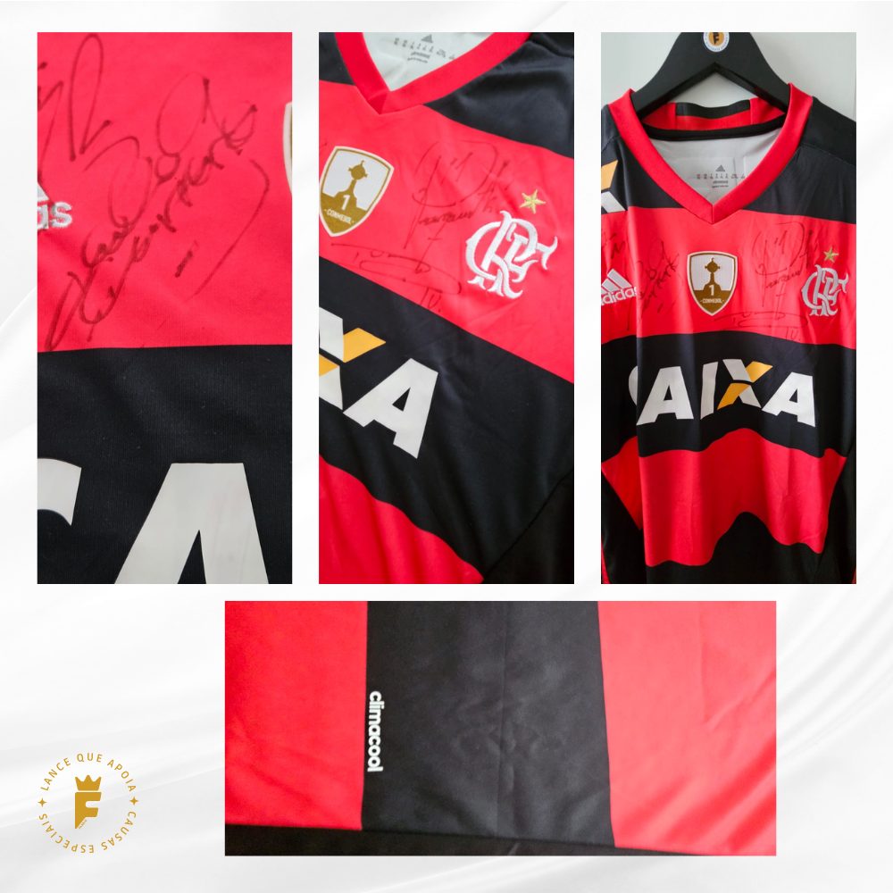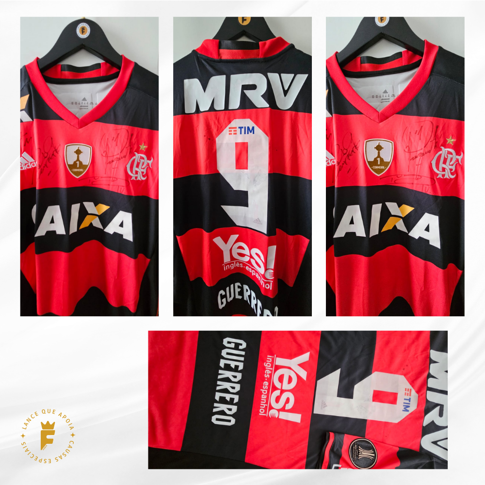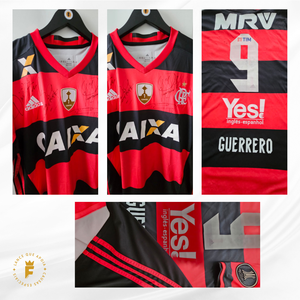 Camisa oficial do Flamengo 2016-2017, vers jogador, autografada Vini Jr, Guerrero, Paquetá e Diego